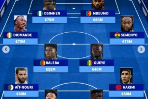 体育资讯4月2日讯 德国转会市场盘点了非洲最贵阵,姆伯莫、奥斯梅恩双前锋,阿什拉夫、塞梅尼奥在列。