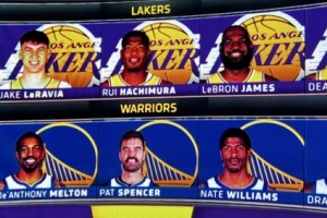 湖人VS勇士,赛前双方首发阵容公布,湖媒晒出首发对比图写道:“我以为我们已经够惨了,但是勇士简直是掉进了地狱里。”