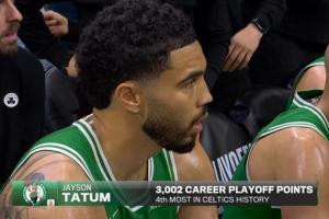 GIF-这个三分 让塔图姆的季后赛总得分来到3000分!
