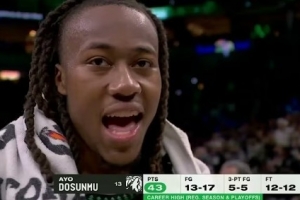 道苏姆:我的意思是,这就是你打球的意义所在。你就是为了这样的时刻、这样的比赛而打球。我很激动,感到很幸运,感谢上帝。