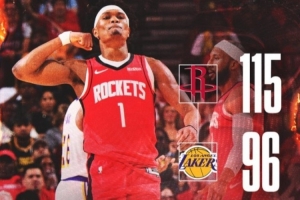 体育资讯4月27日讯 NBA季后赛G4,火箭在主场以115-96击败湖人,将系列赛比分扳至1-3。