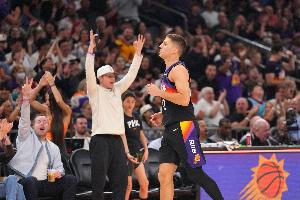 首节比赛,太阳球员吉莱斯皮表现出色,尤其是进攻端手感火热弹无虚发,打了10分钟,投篮4中4,三分球3中3,罚球1中0,超高效砍下11分1篮板1抢断。