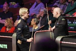 1/4决赛,希金斯在两阶段结束后,7-9落后尼尔·罗伯逊,第三阶段比赛,希金斯打出单阶段6-1,强势晋级四强。