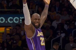 GIF-阿门造成犯规 詹姆斯不满