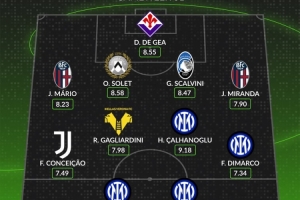 中场:孔塞桑(尤文图斯,7.49分)、加利亚尔迪尼(维罗纳,7.98分)、恰尔汗奥卢(国际米兰,9.18分)、迪马尔科(国际米兰,7.34分)