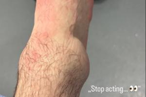 照片中,斯塔赫的右脚脚踝严重肿胀,几乎和鸡蛋差不多大。斯塔赫还配文“停止演戏👀”,似乎是在暗示有人质疑他的伤情严重程度。